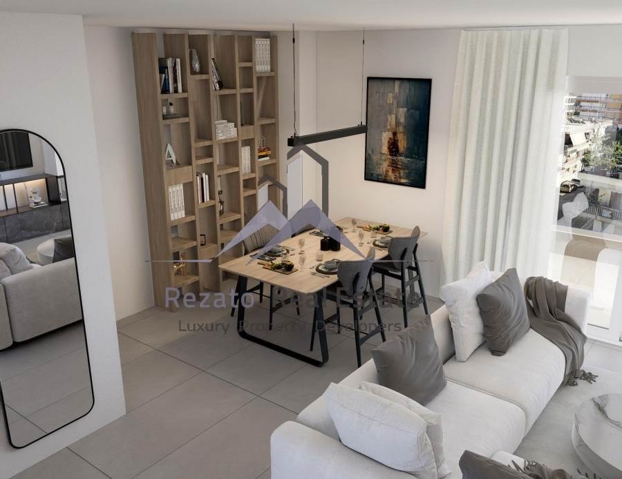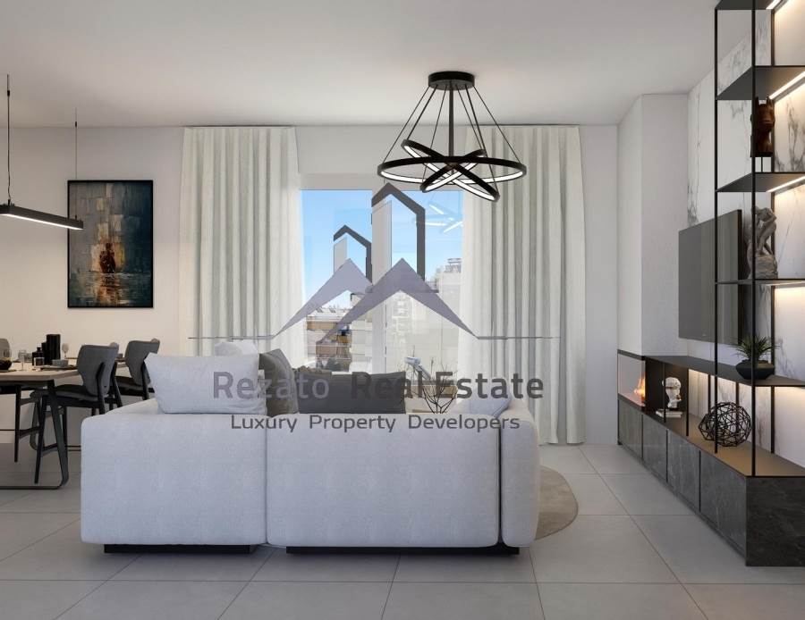 Nea Smyrni, Alsos, Floor Apartment For Sale, 96 sq.m., Property Status: under construction, Floor: 5th, 1 Level(s), 2 Bedrooms 1 Kitchen(s), 1 Bathroom(s), 1 WC, Heating: Personal, Building Year: 2024, Energy Certificate: A, 1 parking(s), Floor type: Granite + Wooden floors, Features: Elevator, Security door, CCTV, Storage room, Satellite Receiver, Internet Line, Double Glazed Windows, Window Screens, Balconies, Luxury, Airy, Roadside, Bright, Boiler, Price: 380.000€. Rezato Properties Real Estate, email: info@rezatoproperties.gr