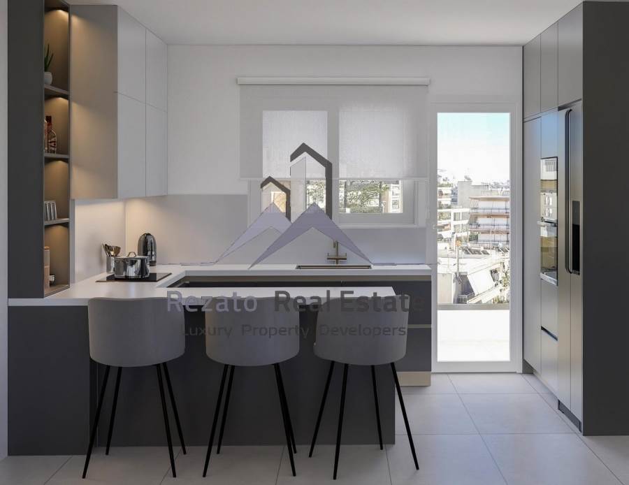 Nea Smyrni, Alsos, Floor Apartment For Sale, 96 sq.m., Property Status: under construction, Floor: 4th, 1 Level(s), 2 Bedrooms 1 Kitchen(s), 1 Bathroom(s), 1 WC, Heating: Personal, Building Year: 2024, Energy Certificate: A, 1 parking(s), Floor type: Granite + Wooden floors, Features: Elevator, Security door, CCTV, Storage room, Satellite Receiver, Internet Line, Double Glazed Windows, Window Screens, Balconies, Luxury, Airy, Roadside, Bright, Boiler, Price: 370.000€. Rezato Properties Real Estate, email: info@rezatoproperties.gr