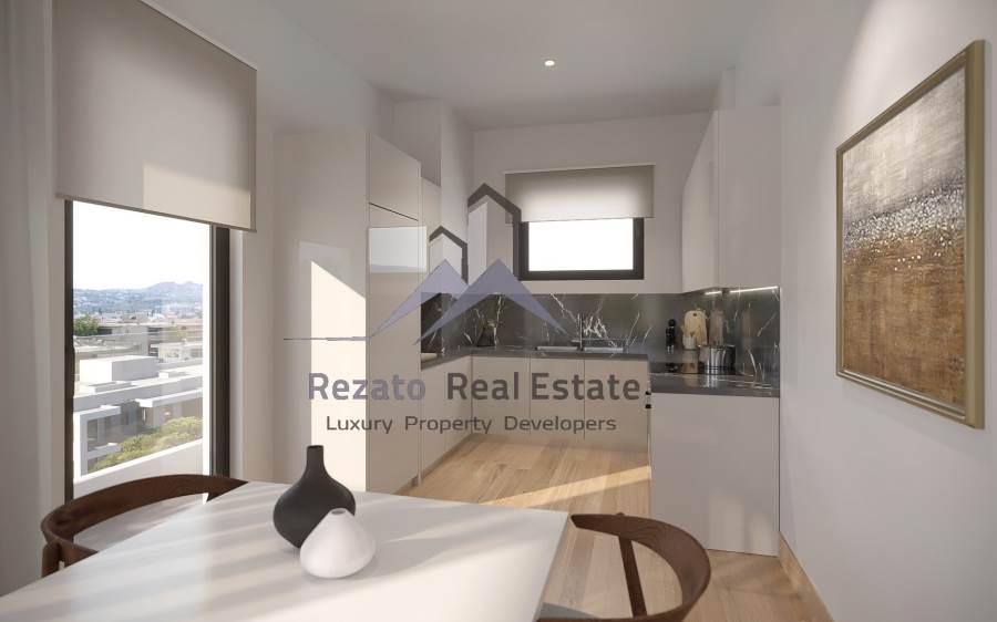 Alimos, Floor Apartment For Sale, 92 sq.m., Property Status: under construction, Floor: 1rst, 1 Level(s), 2 Bedrooms (1 Master), 1 Kitchen(s), 2 Bathroom(s), Heating: Personal - Heat Pump, Building Year: 2026, Energy Certificate: A, 1 parking(s), Floor type: Granite + Wooden floors, Features: Elevator, Security door, CCTV, Storage room, Fireplace, Satellite Receiver, Internet Line, Double Glazed Windows, Window Screens, Balconies, Luxury, Airy, Roadside, Bright, On Corner, Underfloor, Solar water system, Price: 415.000€. Rezato Properties Real Estate, email: info@rezatoproperties.gr